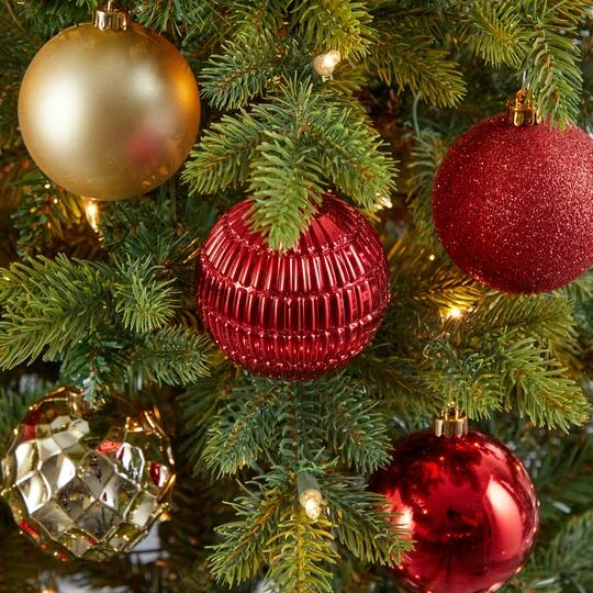 Get into the holly jolly spirit this holiday season with an easy, go-to set of shatterproof tree ornaments. Perfect for accenting and filling in bare spaces in Christmas trees, this set of holiday inspired ornaments comes in bright seasonal hues and reflects a glass-like quality without the fear of damage should they fall or drop. They’re perfect for mixing and matching with other similar colors and themes.
