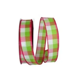 JAM Paper 1.5″ X 50yd. Wired Celine Plaid Ribbon Citrus/Fuchsia