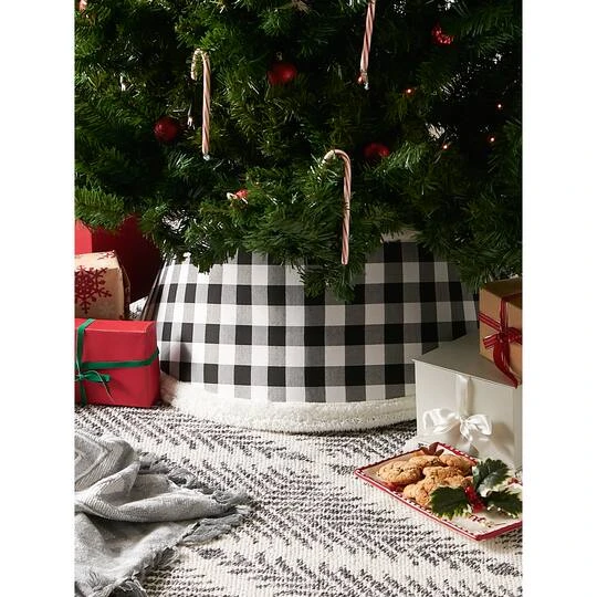 Add holiday charm to your Christmas tree with this tree collar. Completely hides the trunk of your tree as well as the unsightly tree stand. Simply wrap around the base of your stand and fasten at the back. No more wrinkled tree skirts.