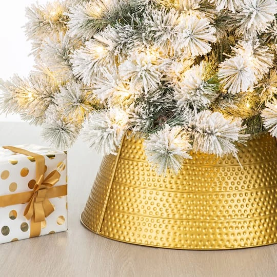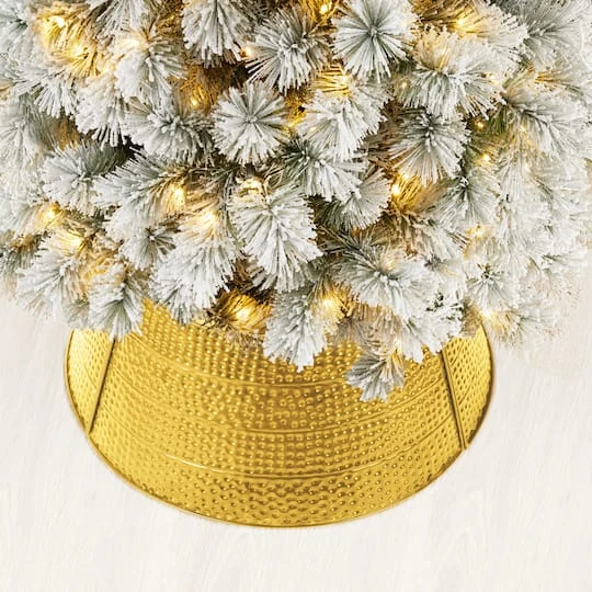 Create a unique look for your Christmas tree this year with this Hammered Tree Collar. This unique collar showcases a brilliant textured finish and a metallic sheen, giving the tree a fashionable look while maintaining the holiday spirit.