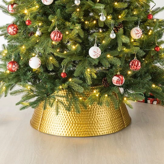 Glitzhome® 26" Hammered Metal Tree Collar Gold -Holiday Glow D479551S 1 1