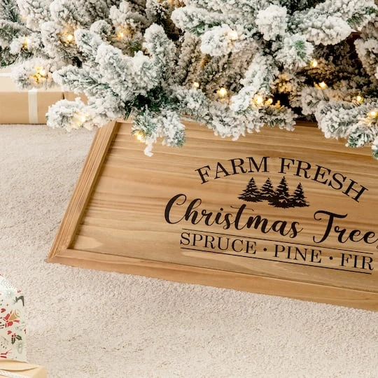 Our handcrafted tree box collars add a rustic, elegant charm to any home or business. The tree boxes not only add beauty and hide the undesirable parts of your tree, but they also prevent kids and pets from getting into the bottom side of your tree. They are made of solid wood. You will simply take the 2 side panels and lock them into the front panel. From there you can then slide your box into place in front of your tree. The trapezoidal design adds your tree with uniqueness.