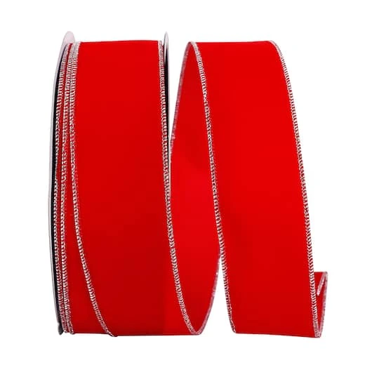 JAM Paper 2.5″ X 50yd. Velvet Wired Value Ribbon Red/Silver
